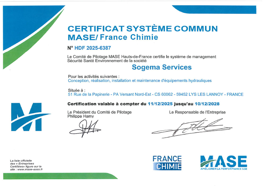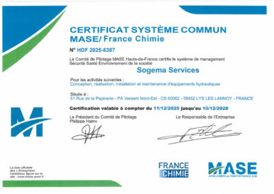 SOGEMA Services a construit son système de management QSE sur la base du « MASE ». Ce référentiel pose en priorité la sécurité des Hommes (intervenants, co-traitants et clients) et l’environnement comme des clés de l’efficacité de l’Entreprise. Nos interventions, ou co-interventions avec du personnel du Client, sont toujours cadrées par une analyse des risques (et au besoin un Plan de Prévention).